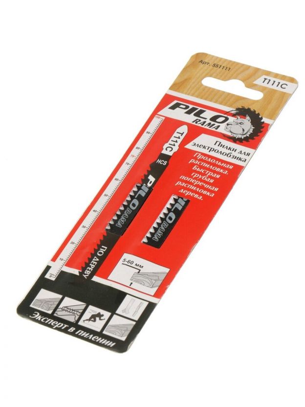 Пилка для лобзика 100х75 мм, 2 шт, 8 зубьев на дюйм, h=5-60 мм, быстрый, грубый, поперечный, продольный распил, T111C, 551111