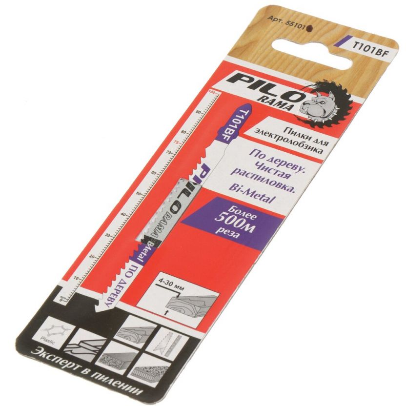 Пилка для лобзика по дереву, 100х75 мм, 10 зубьев на дюйм, h=4-30 мм, чистый распил, Bi-metal, Т101BF, 551017