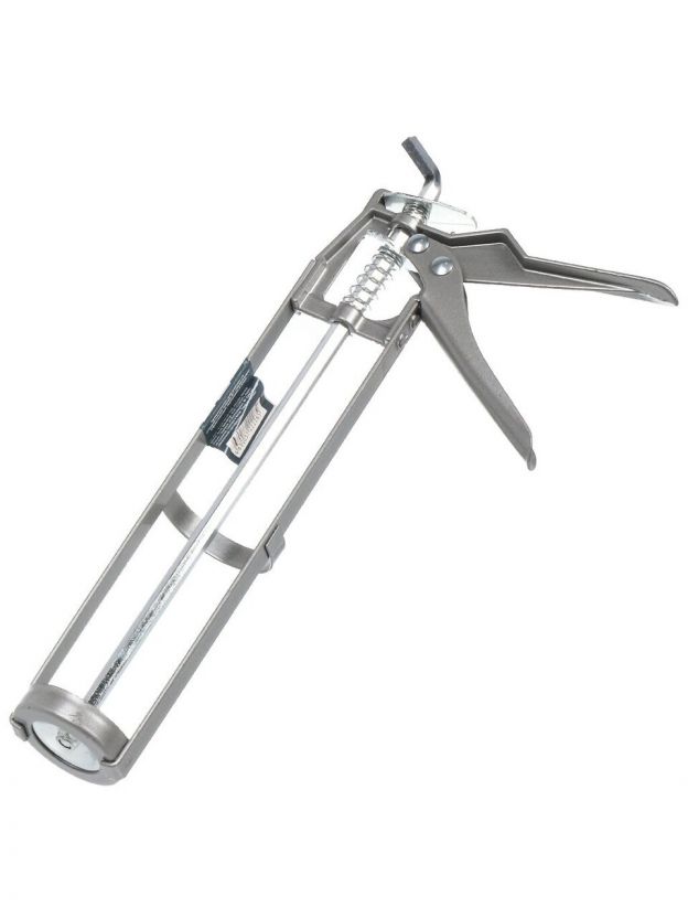 Пистолет для герметика – это инструмент, который обязательно пригодится Вам в строительстве, для ремонта квартиры или автомобиля, при склеивании поврежденных предметов. Казалось бы, достаточно приобрести стандартный тюбик с герметиком, и пистолет Вам не нужен. Однако с помощью модели Bartex 150025 Вы сможете израсходовать содержимое тубы полностью и не допустить контакта рук с вязким составом. Инструмент имеет скелетный корпус, выполненный из алюминия.