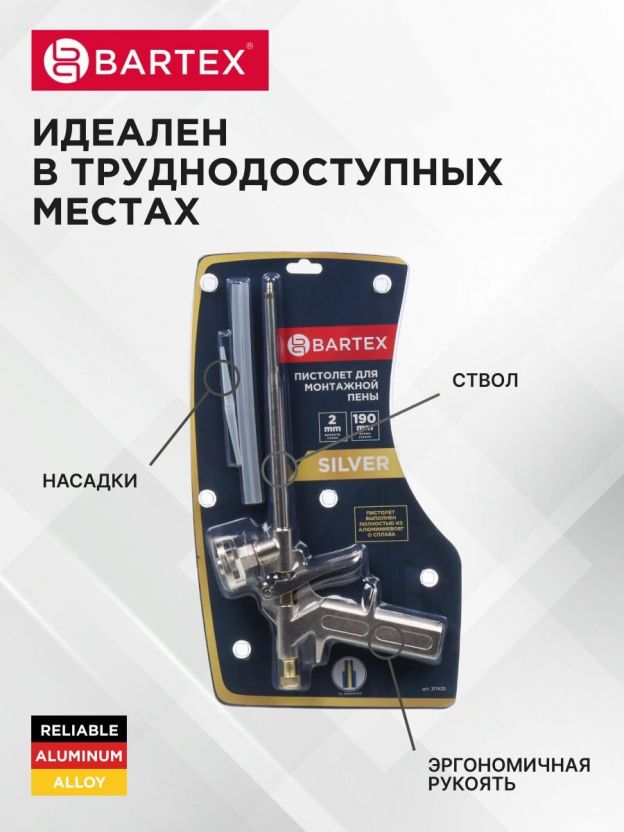 Пистолет для монтажной пены, 190 мм, алюминий, Bartex, Silver, CY-058