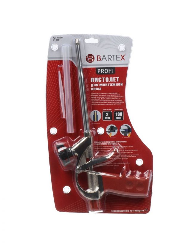 Модель Bartex CY-028 Profi герметично заполняет зазоры и фиксирует элементы конструкций. Пистолет обеспечивает более качественную работу с монтажной пеной. Это достигается за счет возможности точного регулирования потока.