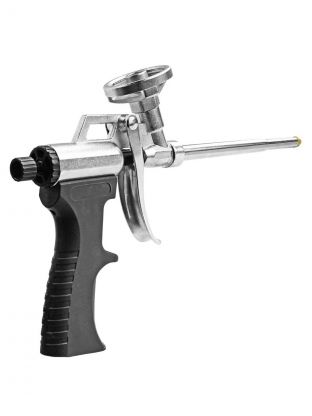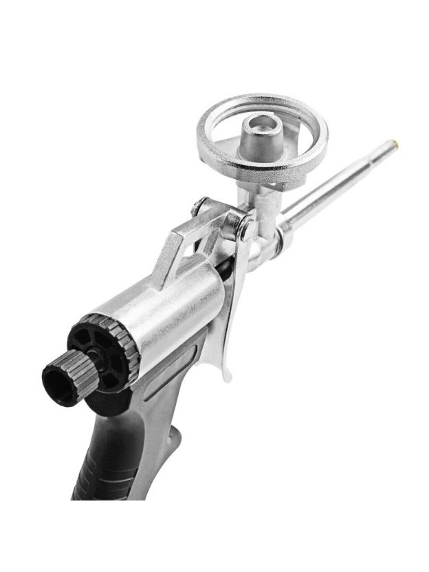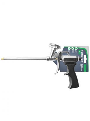 Пистолет для монтажной пены Fomeron Hit обладает прочным металлическим корпусом. Регулятор напора пены расположен с тыльной стороны корпуса пистолета, что позволяет легко и точно регулировать количество выпускаемого содержимого.