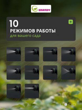 Пистолет для полива Grandy JS-9322 — идеальный выбор для ухода за газоном и огородом. Удобный быстросъемный механизм обеспечивает легкое подключение, а 10 режимов позволяют подобрать оптимальный вариант полива для любых растений. Прочный ABS-пластик гарантирует долговечность. Экономия времени и воды, простота использования и надежность — основные преимущества этого инструмента.