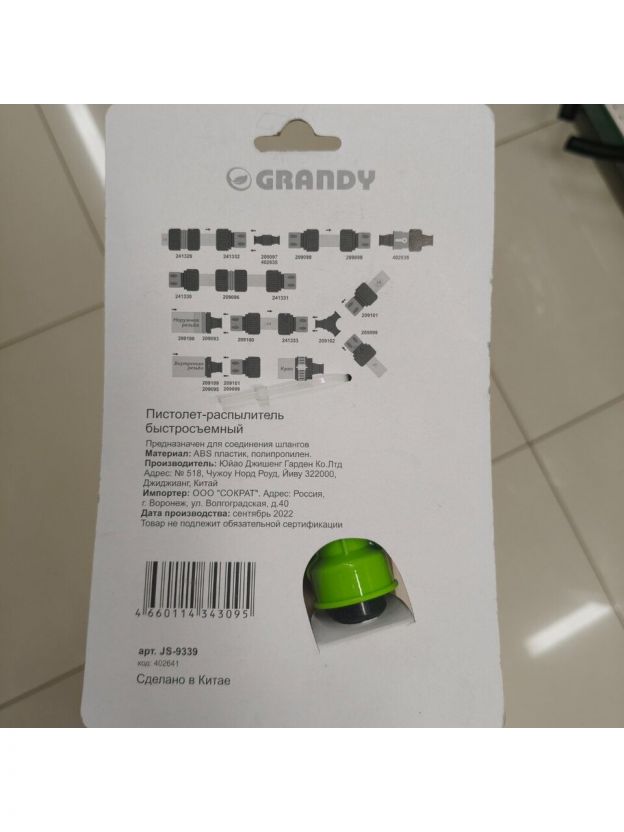 Пистолет для полива быстросъемный Grandy JS-9339 – надежный инструмент для ухода за газоном и огородом. Быстросъемное соединение обеспечивает легкую установку, а регулировка режима позволяет выбрать оптимальный напор воды. ABS-пластик гарантирует долговечность и устойчивость к износу. Универсальное решение для эффективного полива участка.