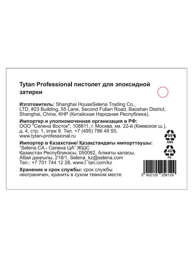 Пистолет выполнен из прочного металла, устойчив к агрессивным химическим составам, подходит для регулярного профессионального использования. Производитель — Tytan, модель Professional, артикул 56082.