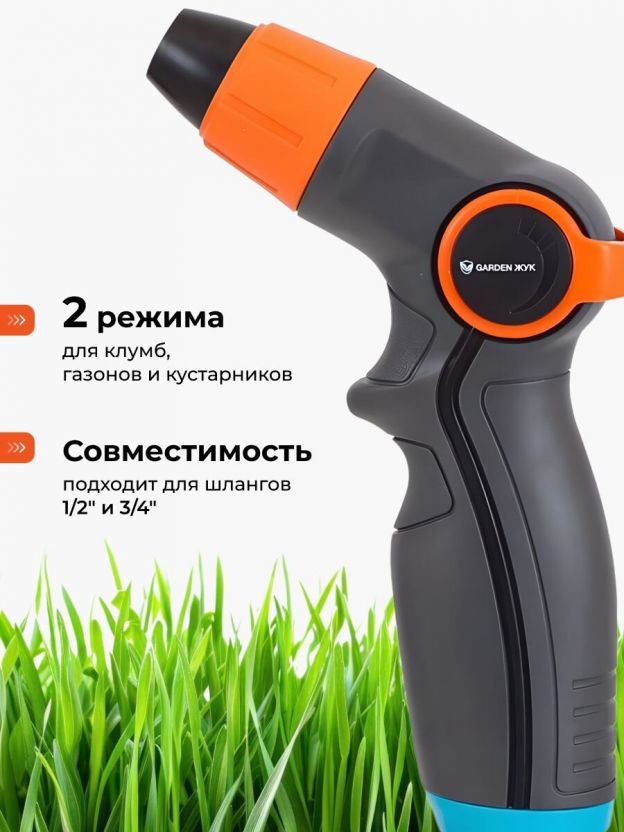 Пистолет поливочный 2 режима под коннектор Жук Garden 322677-00 — эффективное решение для ухода за газоном и огородом. Современный дизайн, удобство использования и надежная конструкция делают его незаменимым помощником для владельцев дачных участков и частных домов. Благодаря двум режимам работы легко подобрать оптимальный вариант полива для любых растений, обеспечивая им необходимый уход и экономию воды.