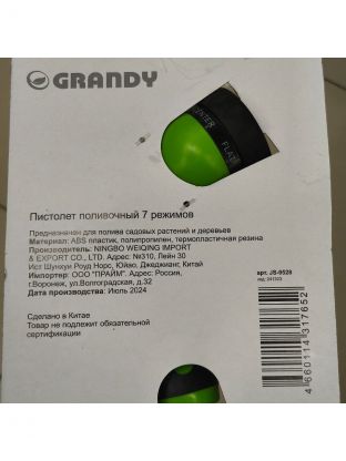 Пистолет-распылитель 7 режимов, быстросъемный, в блистере с клипсой, Grandy, JS-9528