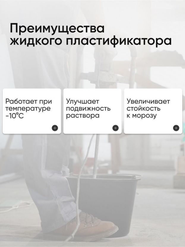 • Пластифицирующая добавка повышает сохраняемость подвижности растворных смесей (более 3 часов);