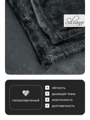 Плед Silvano «Сильвия» выполнен из 100% полиэстера с коротким ворсом — это современная микрофибра, обладающая мягкостью и приятной текстурой. Он отлично сохраняет тепло, не накапливает пыль, легко стирается при 30° и быстро высыхает, что особенно важно для семей с детьми или аллергиков. Если вы ищете, какой плед выбрать для дачи или машины, обратите внимание на компактность и лёгкость этой модели — её удобно брать с собой в поездки или использовать как накидку на кресло.