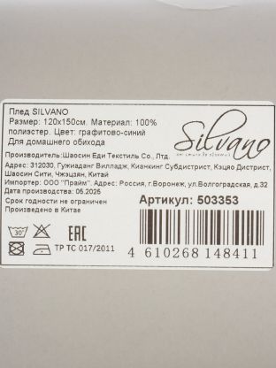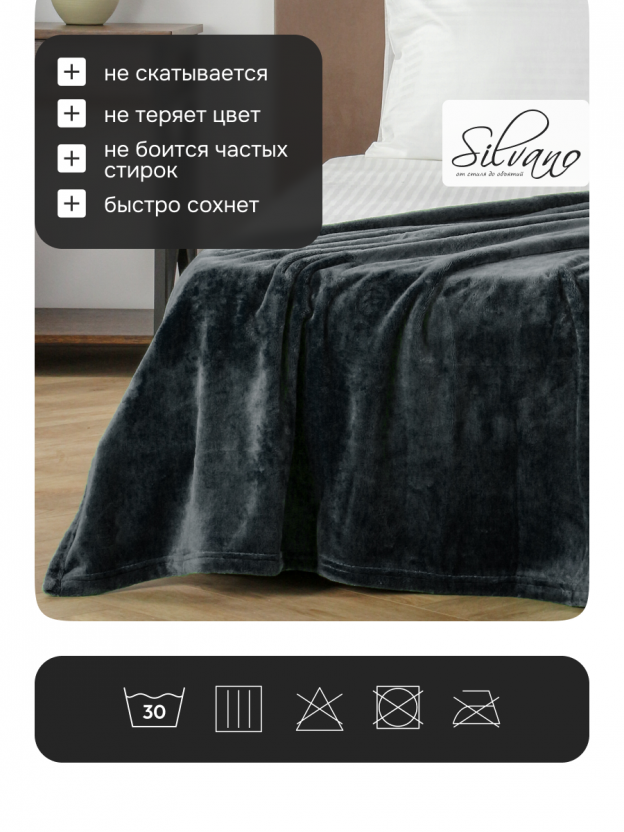 Плед 120x150 см из микрофибры Silvano «Сильвия» — уютное решение для дома, дачи и автомобиля: мягкость, долговечность, современный графитово-синий цвет по доступной цене.