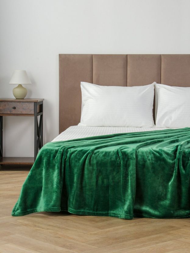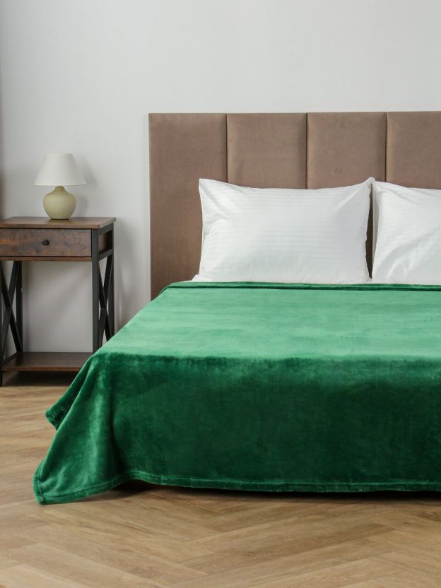 Плотность 280 г/м2 обеспечивает тепло и долговечность, короткий ворс не скатывается, а универсальный зелёный цвет подойдёт для любого интерьера.
