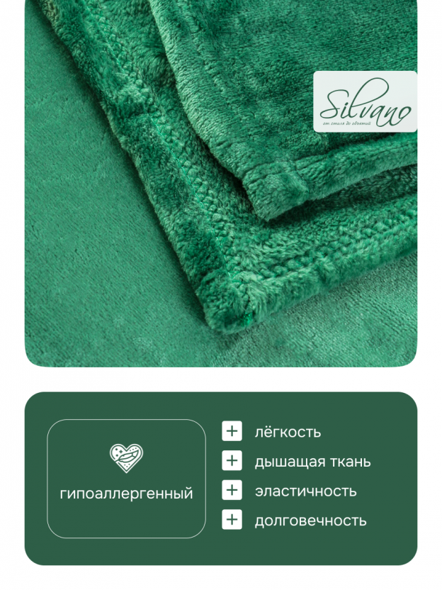 Плед 1.5-спальный, 120х150 см, 280 г/м2, микрофибра, 100% полиэстер, Silvano, Сильвия, зеленый