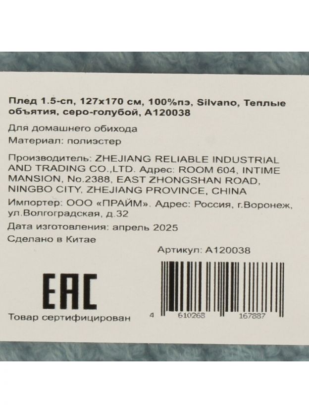 Плед 1.5-спальный Silvano "Теплые объятия", 127х170 см, серо-голубой — уют и тепло для дома и дачи по доступной цене. Идеальный вариант для подарка и комфортного отдыха.