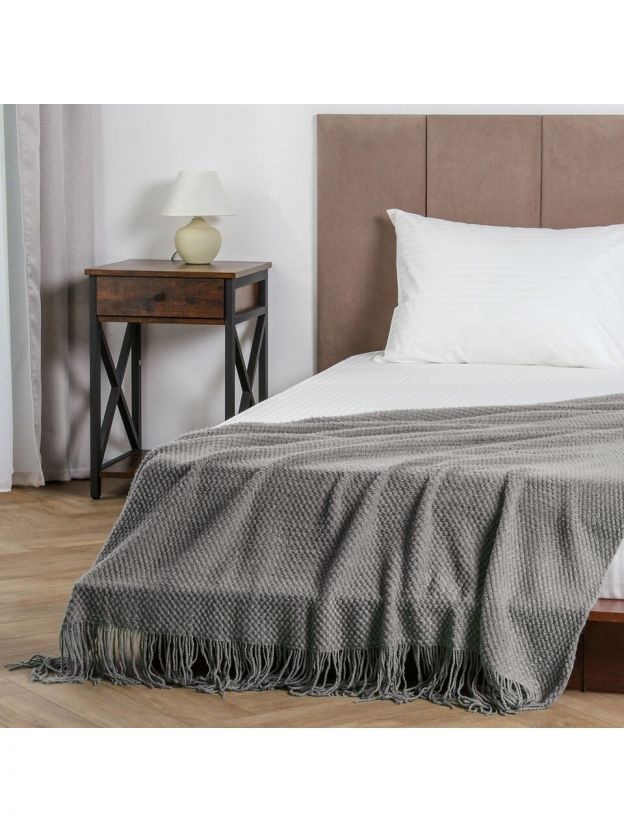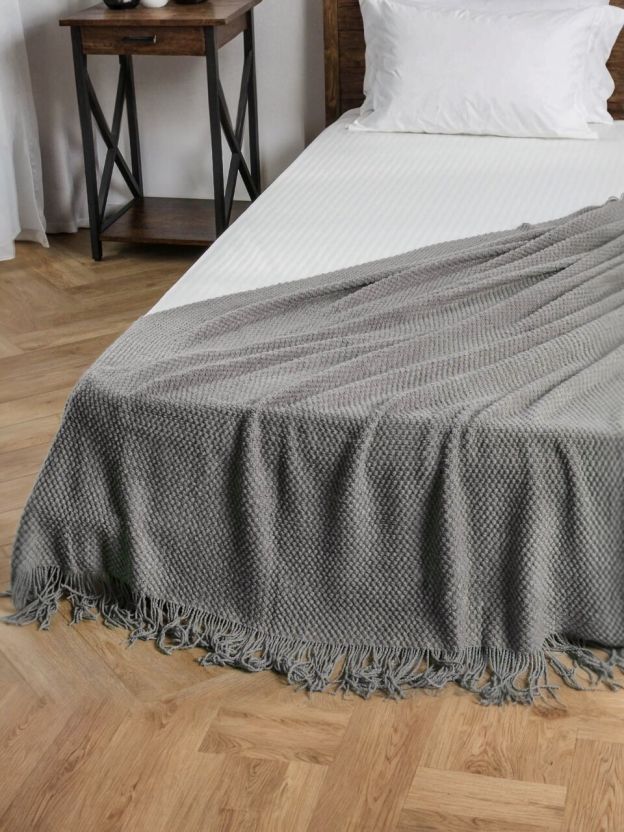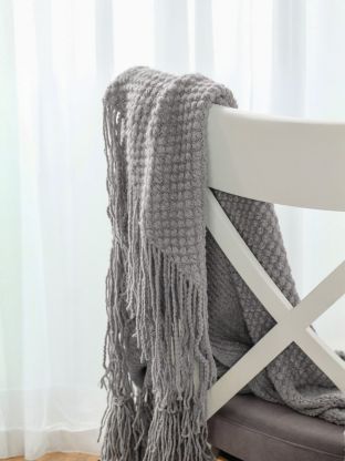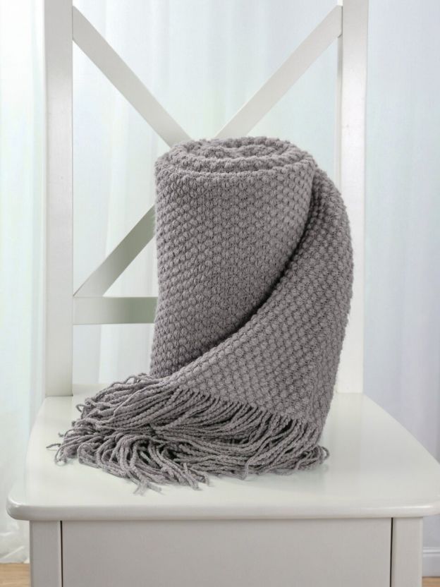 - Эксклюзивный дизайн: вязаный плед с бахромой добавляет уюта и стиля в любой интерьер.