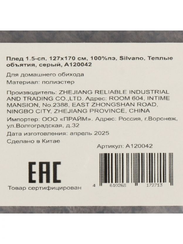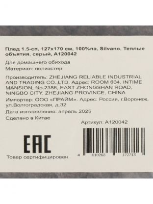 Плед 1.5-спальный Silvano "Теплые объятия", 127х170 см, серый: уют и тепло дома по доступной цене — идеальный выбор для дачи, дивана или подарка.