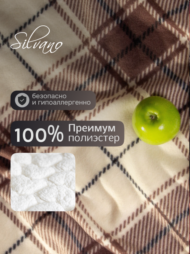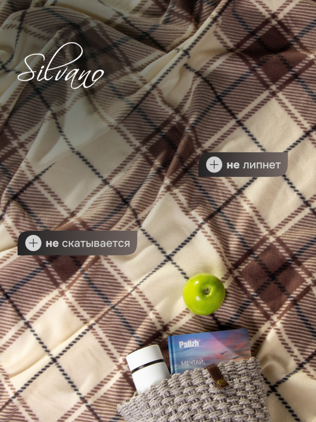 Чем отличается этот плед от аналогов? В отличие от изделий с натуральным ворсом, флис из 100% полиэстера не вызывает аллергию, не скатывается, быстро сохнет после стирки при 30 градусах и сохраняет форму даже при регулярном использовании. Как использовать плед Silvano? Просто возьмите его с собой на дачу, в машину или используйте дома для уюта и тепла. Подходит ли для подарка? Да, благодаря стильной расцветке и универсальности это отличный выбор для любого случая.