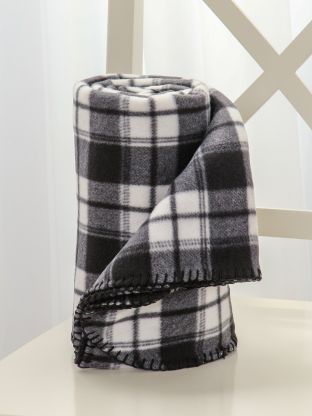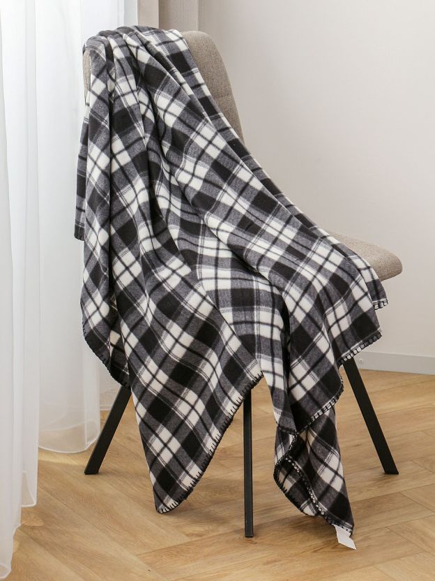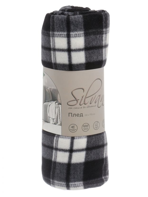 Плед 1.5-спальный, 130х170 см, флис, 100% полиэстер, Silvano, Клетка, черно-белый