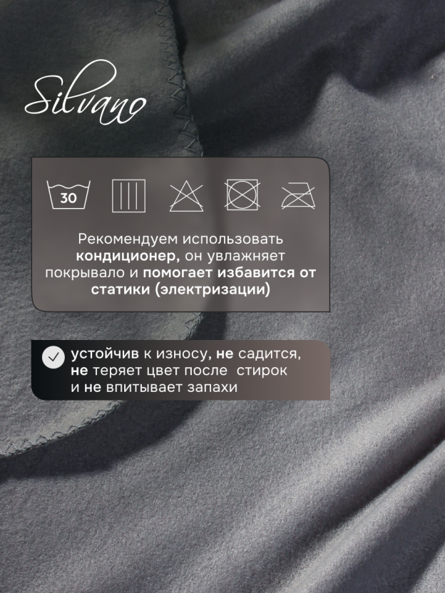 Рекомендуется машинная стирка при 30 градусах без отбеливателей. Плед не требует глажки, не линяет и сохраняет мягкость после многократных стирок благодаря 100% полиэстеру.