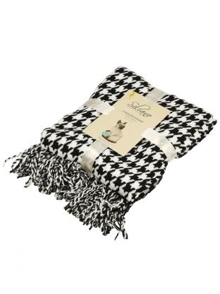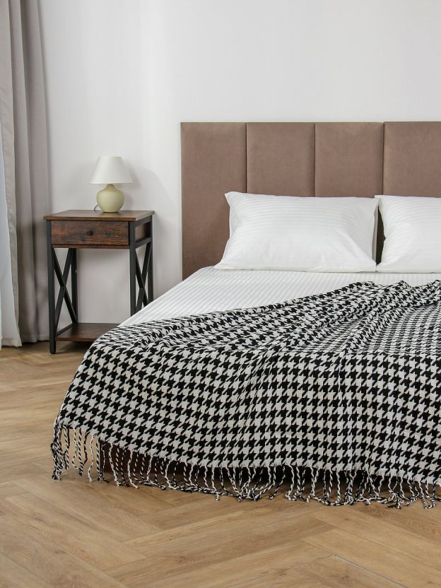 - Уникальный дизайн: модный вязаный плед с рисунком "гусиная лапка" — эффектный акцент в интерьере.