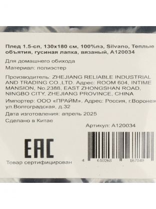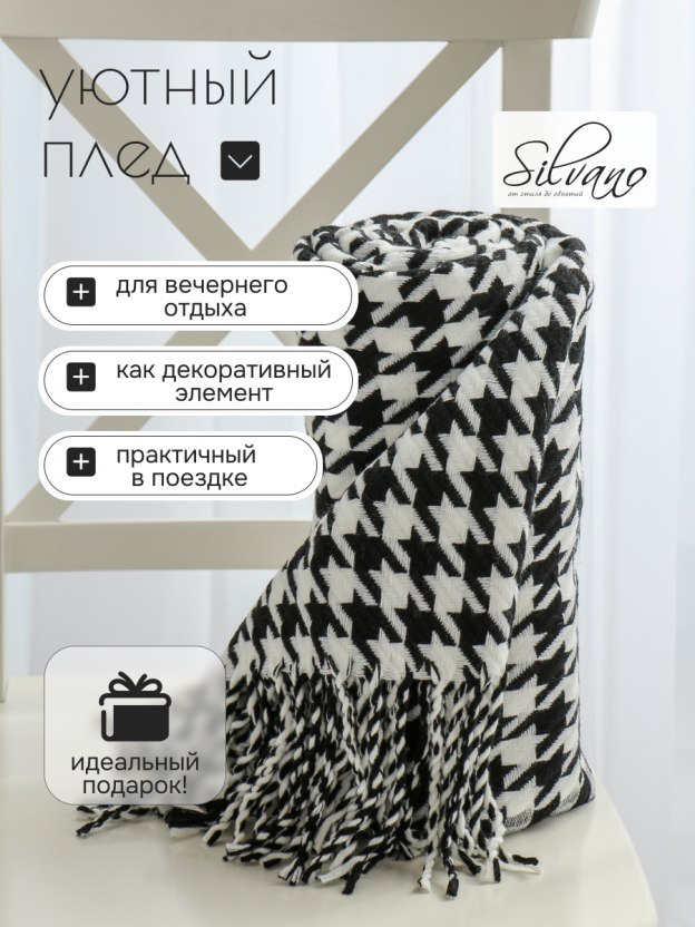 Плед 1.5-спальный Silvano "Теплые объятия" 130х180 см — уют и стиль для вашего дома: вязаная фактура, трендовый узор "гусиная лапка", доступная цена.