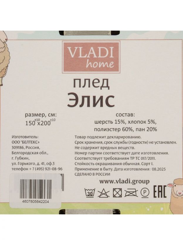 Тёплый плед Vladi Элис 1,5-спальный 150х200 см: уют, стиль и практичность для дома, дачи или автомобиля по выгодной цене.
