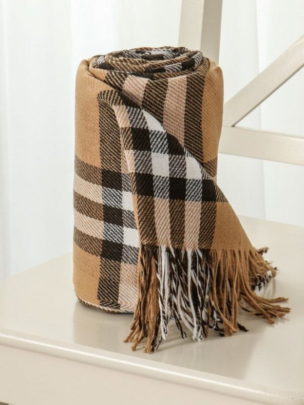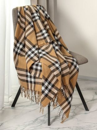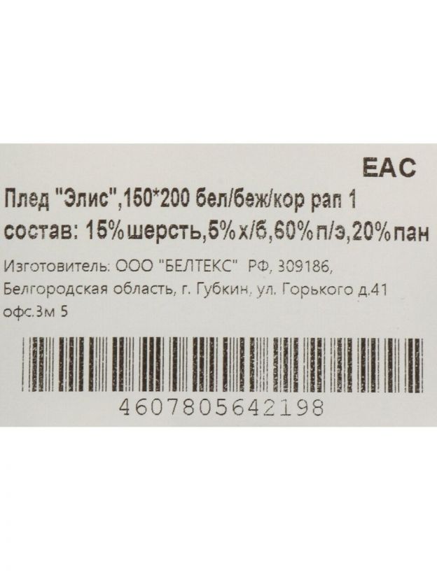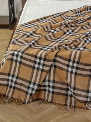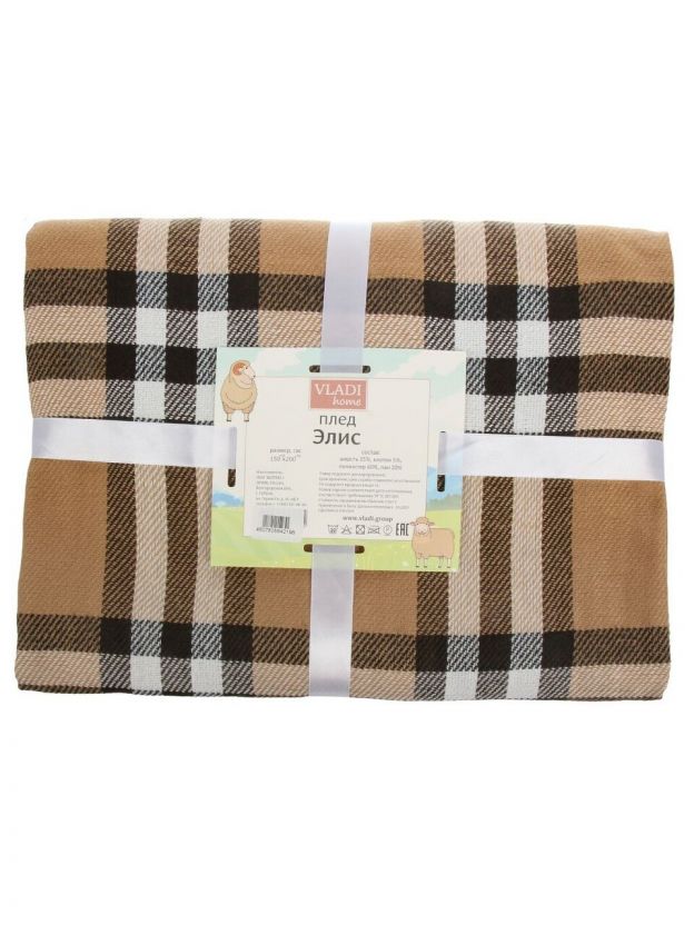 Плед 1.5-спальный, 150х200 см, 15% шерсть, 5% хлопок, 60% полиэстер, 20% ПАН, Vladi, Элис, белый, бежевый, коричневый, рап.1