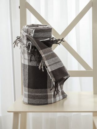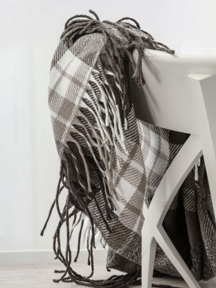 Плед 1.5-спальный, 150х200 см, 15% шерсть, 5% хлопок, 60% полиэстер, 20% ПАН, Vladi, Элис, белый, серый, светло-коричневый, рап.4