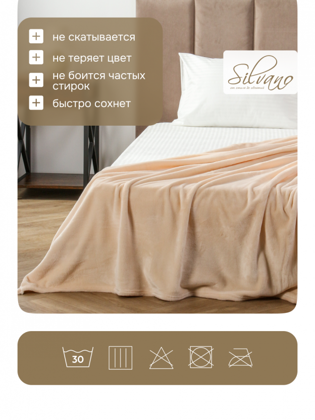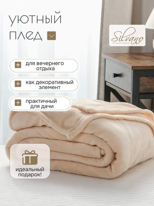 Часто спрашивают: «Как выбрать плед для дома, чтобы он был легким в уходе и не вызывал аллергию?» Микрофибра — современный материал, который не накапливает пыль, не вызывает раздражения кожи, быстро сохнет и не требует глажки. В отличие от моделей с рисунком, однотонный кремовый плед легко впишется в любой интерьер и не выцветает при стирке. Если вы ищете, какой плед лучше для подарка на новоселье или для уютных вечеров на даче — Silvano Сильвия станет универсальным выбором.