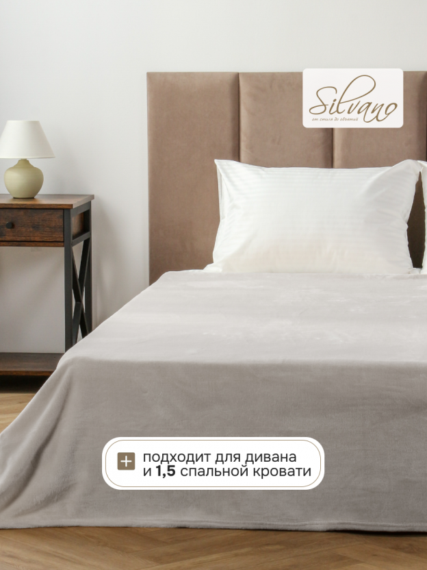 Плед Silvano Сильвия 150х200 см из микрофибры: мягкое тепло без катышков, универсальный размер для дивана или кровати, стильный светло-серый оттенок.