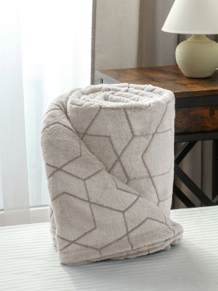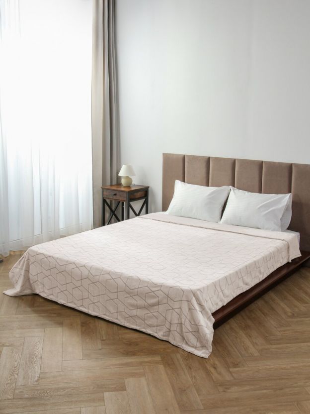 Плед 2-спальный, 180х200 см, 280 г/м2, микрофибра, 100% полиэстер, Silvano, Геометрия, серо-бежевый