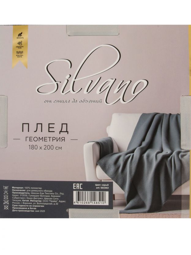 Плед Silvano — это практичное решение для ежедневного использования и стильный аксессуар для вашего дома. Закажите сейчас и оцените комфорт, мягкость и универсальность по выгодной цене.