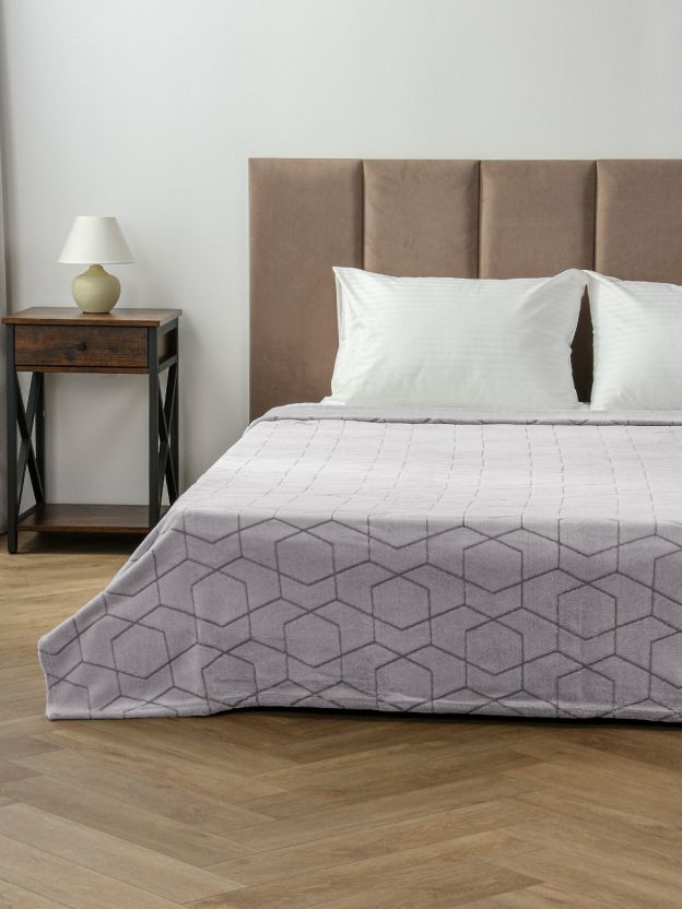 Плед 2-спальный, 180х200 см, 280 г/м2, микрофибра, 100% полиэстер, Silvano, Геометрия, серый