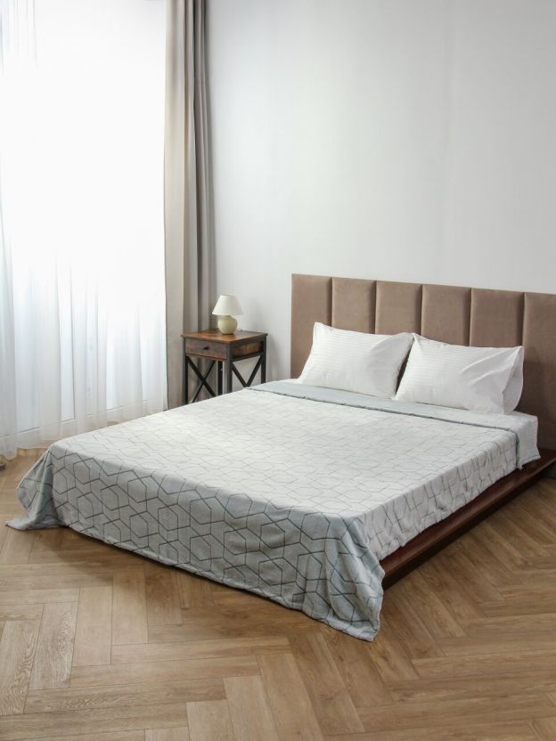 - Большой размер 180х200 см, плотная микрофибра 280 г/м2 — оптимально для двуспальной кровати.