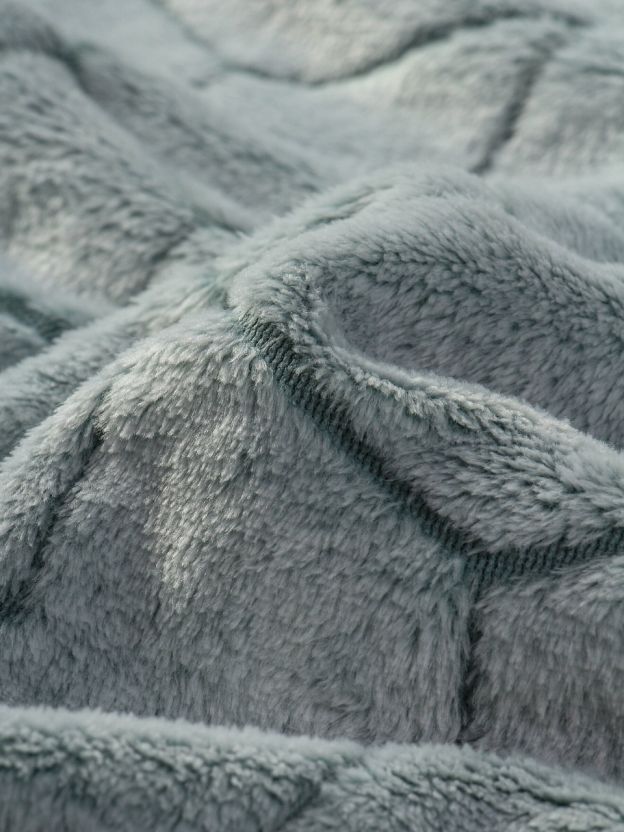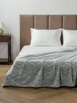 Размер пледа 180х200 см — оптимально для двуспальной кровати, покрывает и стандартный диван.