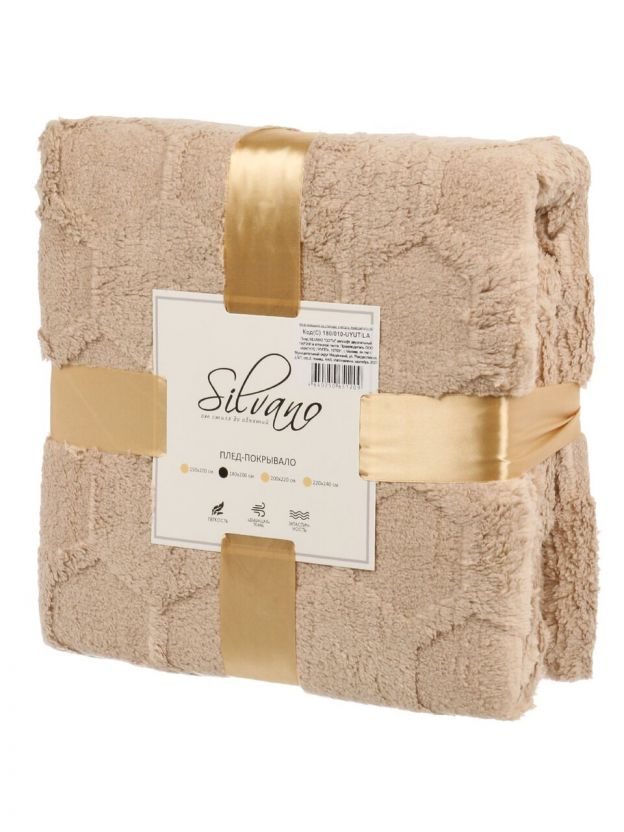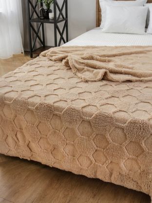 Плед 2-спальный, 180х200 см, велсофт жаккард, 100% полиэстер, Silvano, Соты, бежевый, 180/010-UYUT/LA