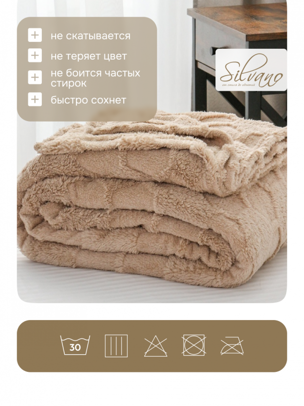 Плед лёгкий, быстро сохнет, не требует сложного ухода, сохраняет тепло и мягкость даже при частом использовании.