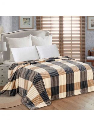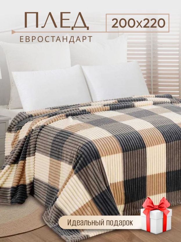 Плед евро, 200х220 см, велсофт жаккард, 100% полиэстер, Silvano, Полоски, Клетка, бежевый, ST-202