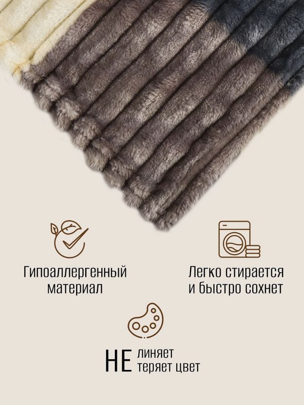 - Высокая тактильная комфортность. Плед мягок и очень приятен на ощупь, не вызывает раздражения кожи.