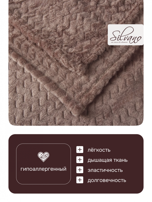 Чем отличается этот плед от аналогов? В отличие от обычных флисовых или шерстяных моделей, велсофт жаккард сочетает в себе плюшевую текстуру, легкость (вес 1,34 кг) и простоту ухода — его можно стирать при 30–40 градусах без риска деформации. Темно-бежевый цвет ZigZag гармонирует с любым интерьером, а универсальный размер евро позволяет использовать плед в разных сценариях: дома, на даче, в подарок близким. Если вы ищете, как использовать плед для создания уюта или как выбрать недорогой плед для семьи, Silvano ZigZag — оптимальный выбор.
