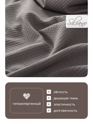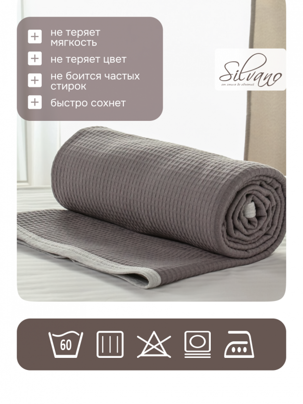 В отличие от синтетических аналогов, хлопковый плед Silvano легко стирается при 60 градусах, не скатывается и сохраняет форму даже после многократных стирок. Если вы ищете, что лучше для кровати или как использовать плед летом и зимой, — этот вариант универсален: он достаточно теплый для прохладных вечеров, но не перегревает. Не содержит ворса, что удобно для аллергиков и семей с животными. Размер евро позволяет использовать плед как покрывало на двуспальную кровать или большой диван.