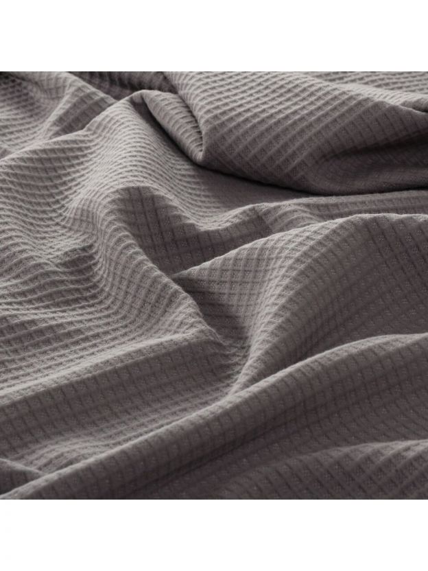 Плед из 100% хлопка — гипоаллергенный, дышащий, не электризуется и приятен к телу. Его легко стирать, он не теряет форму и цвет, что выгодно для регулярного домашнего использования.