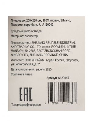 Плед евро 200x230 см Silvano Палермо: уют, стиль и натуральность для вашего дома — 100% хлопок, модная клетка, серо-белая палитра, быстрая доставка.
