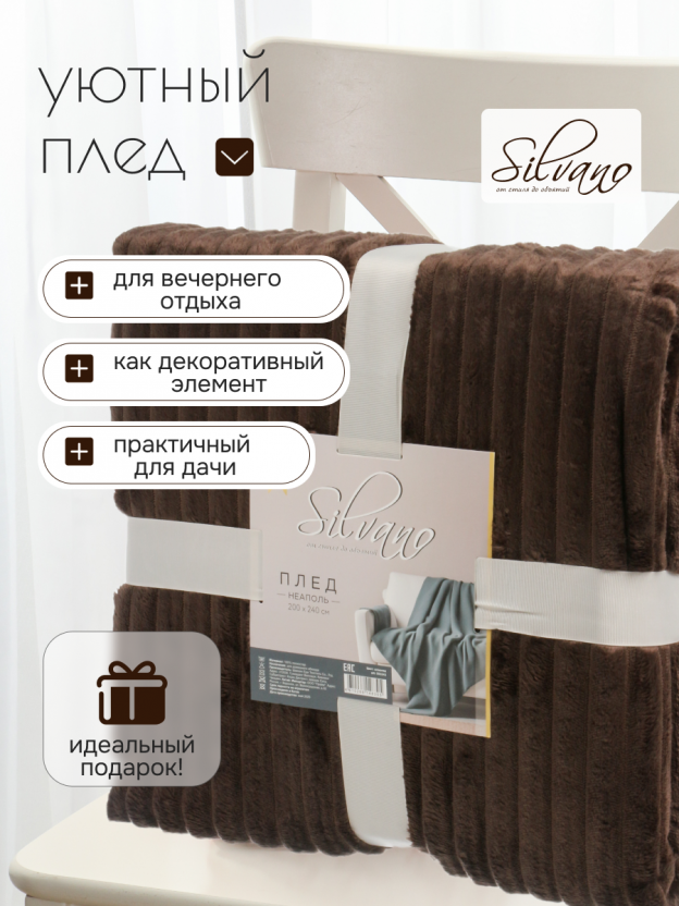 Плед евро Silvano Неаполь 200x240 см, микрофибра, шоколад: уют и тепло для дома и дачи по доступной цене — идеальный выбор для подарка и повседневного использования.