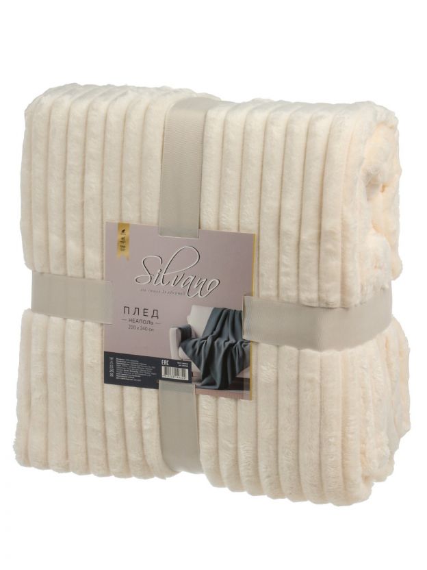 Плед евро, 200х240 см, 280 г/м2, микрофибра, 100% полиэстер, Silvano, Неаполь, ваниль