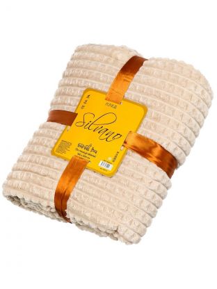 Плед евро, 240х260 см, велсофт жаккард, 100% полиэстер, Silvano, Монако Квадраты, бежевый