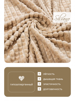 Плед евроформата — 240х260 см. Подходит для кровати и большого дивана, полностью закрывает поверхность и не сползает во время сна.