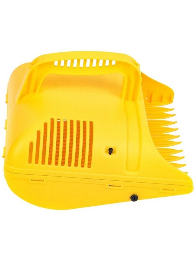 Комбайн из пластмассы отличается маленьким весом, широким захватом и большим объемом бункера. Такие не подвержены коррозии при эксплуатации и хранении.