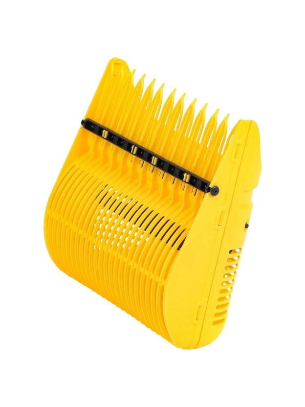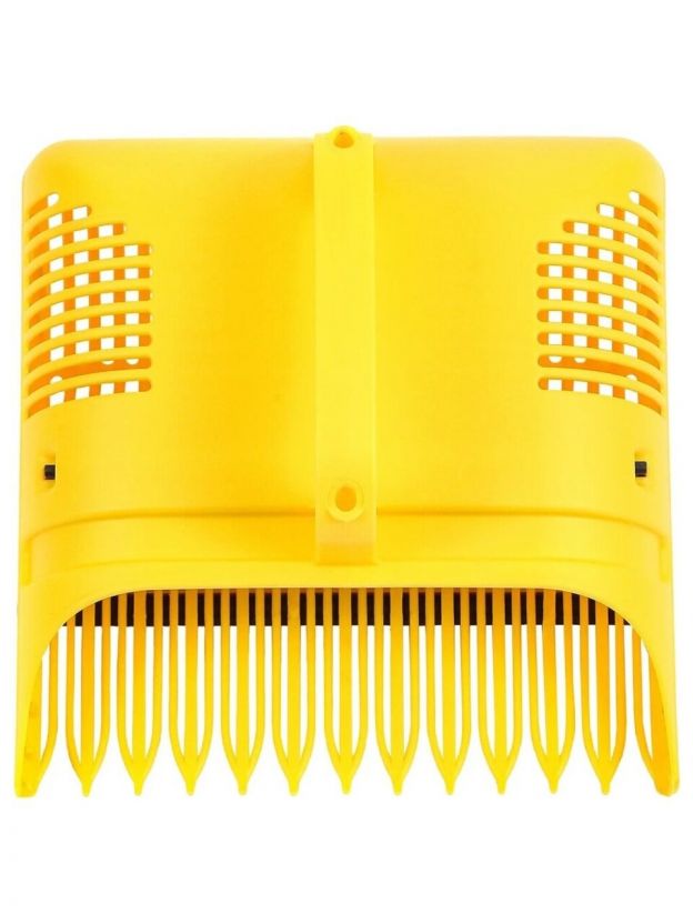 Принцип работы заключается в отделении плодов от кустарников гребенкой плодосъемника, плоды при этом попадают в накопительную часть. Отверстия на дне плодосъемника позволяют высыпаться мелкому мусору и листьям. После работы плодосъемник тщательно промойте чистой водой и просушите. Хранить в сухом, теплом помещении.