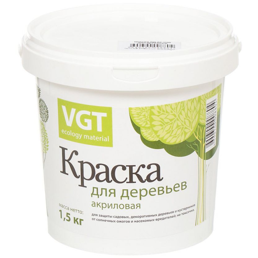 Краска VGT ВД-АК-1180 для деревьев – специальная краска, предназначенная для окраски садовых, декоративных деревьев и кустарников. После высыхания образует белое матовое дышащее покрытие. Защищает от солнечных ожогов и многих видов насекомых-вредителей.