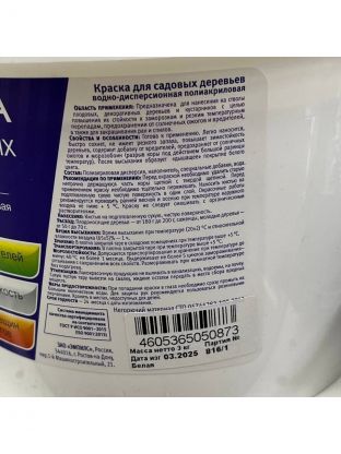 Предназначена для нанесения на стволы плодовых, декоративных деревьев и кустарников с целью повышения их устойчивости к заморозкам и резким температурным перепадам, предохранения от солнечных ожогов и вредителей, а также для закрашивания ран и спилов.